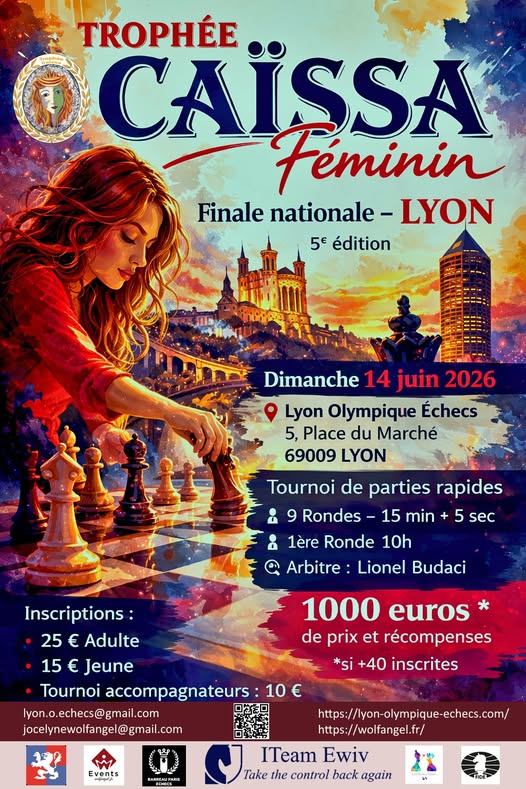 Toutes nos félicitations à Maxime Lagarde Champion de France Blitz 2025 !! Deuxième, Augustin Droin !! Laurent Fressinet termine 9ème et Victor Stephan réalise une très belle performance en terminant 15ème !! BRAVO à nos 4 chartrains !! Une vingtaine de chartrains a participé aux internationaux de rapide et de blitz !! Bravo à tous pour votre participation !!