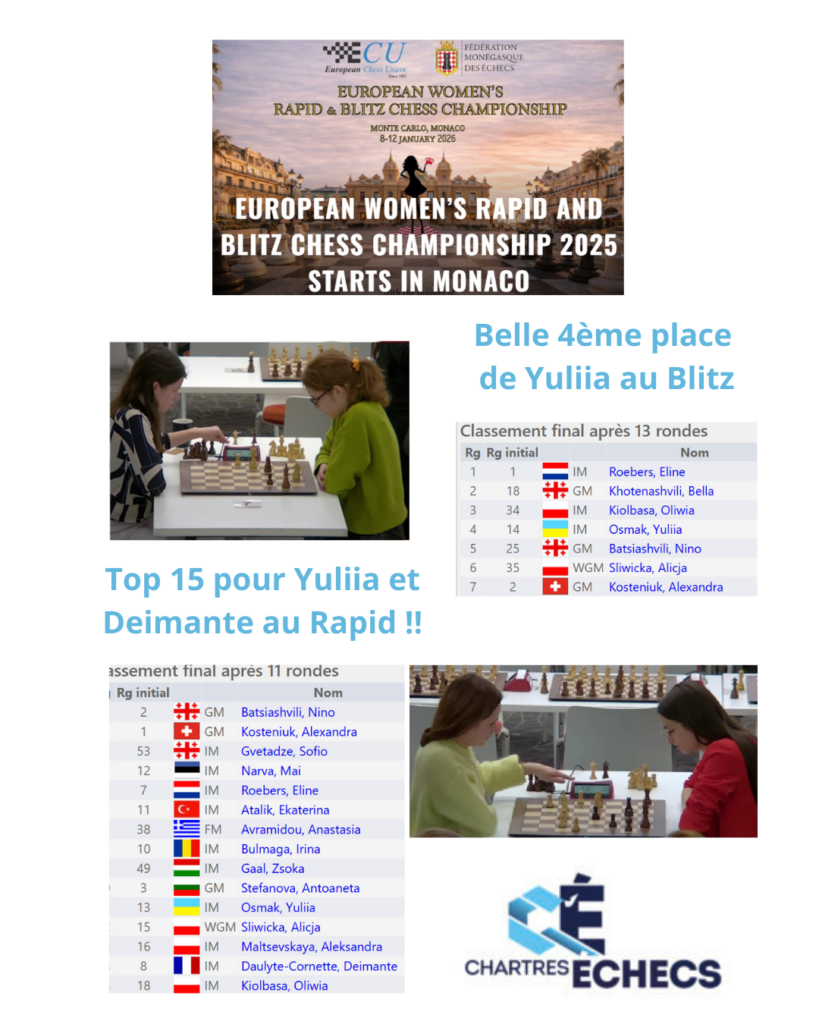 Belle participation de nos deux chartraines Yuliia et Deimante au Championnat d’Europe Féminin de Blitz et de Rapid à Monaco !!