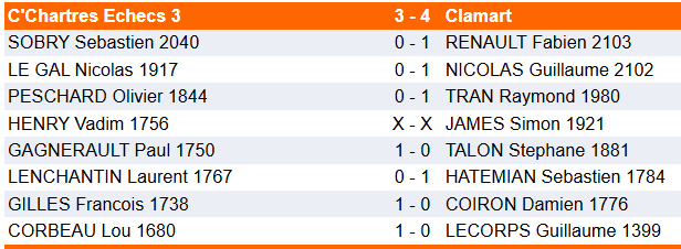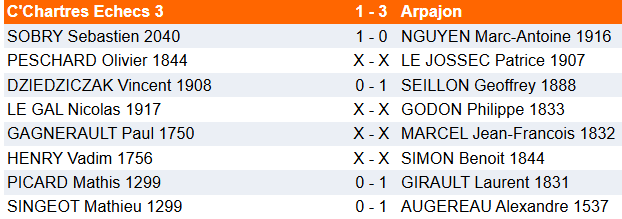 Dernière ronde Défaite fatale pour Chartres 3 qui descend en Nationale 4